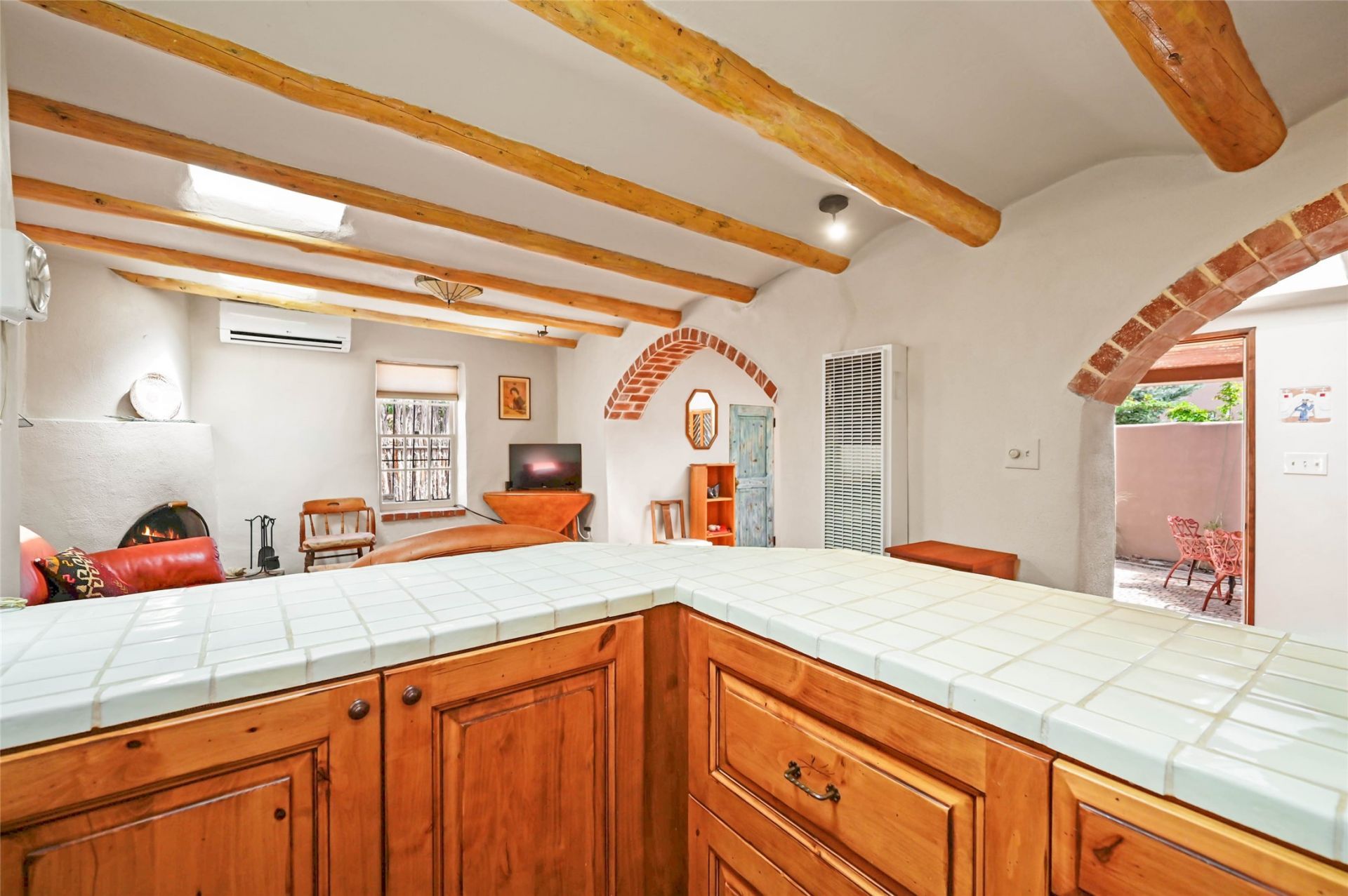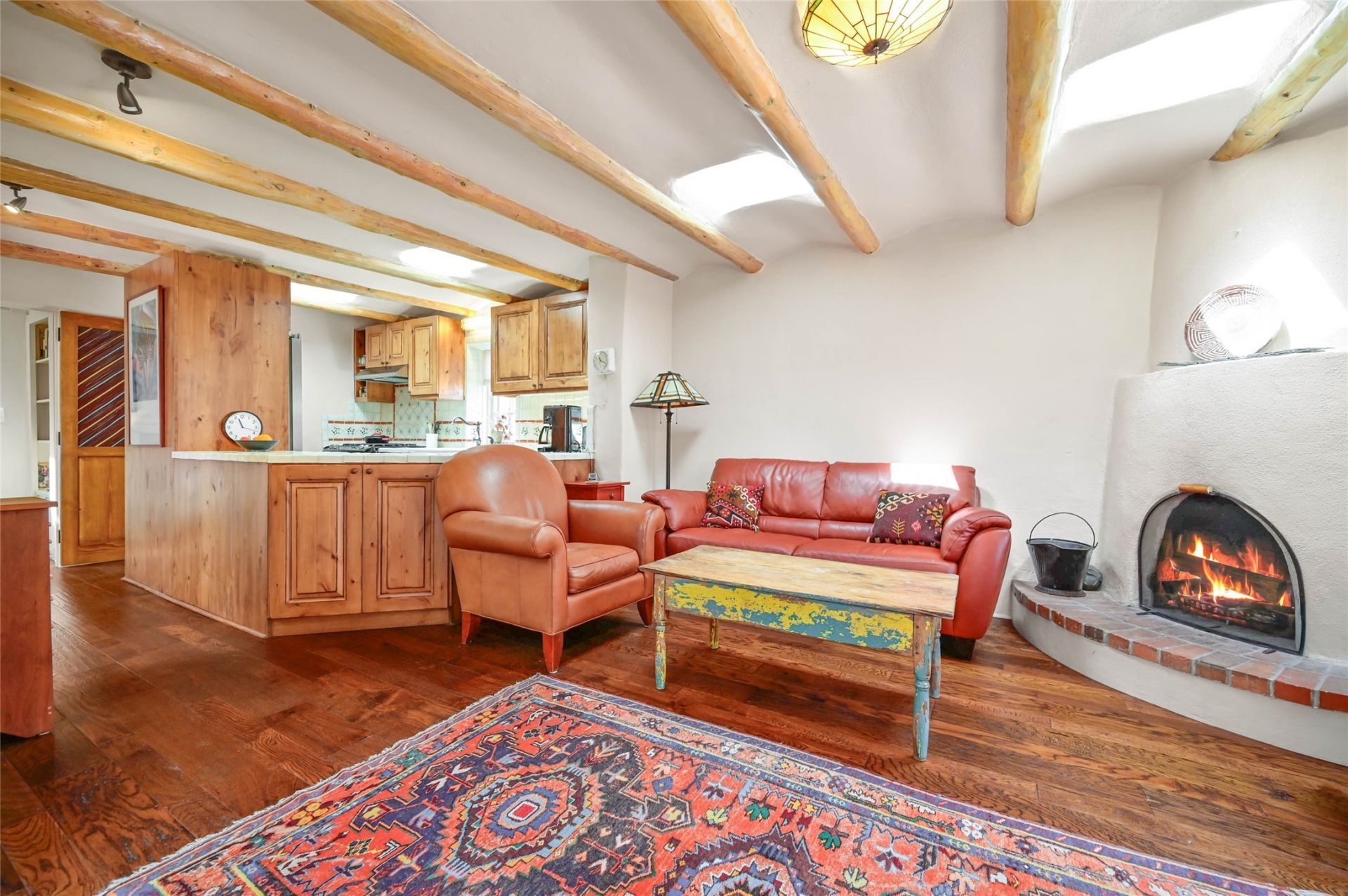 Fabulous downtown condo packed with charm! This delightful unit is one of just 3 residences in the condo association. The one bedroom pied-a-terre is tucked away in the heart of Santa Fe and features an office, 2 bathrooms, an updated kitchen, and a kiva fireplace. The gated courtyard, off-street parking, full laundry and ample storage make this an incredible find. This property is quiet and private yet close to all of the downtown area's culture, fun, and food.