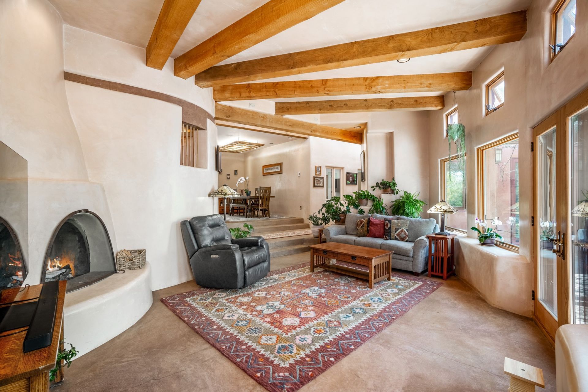 A true tranquil haven for horse lovers and nature seekers, this 13.5-acre high-desert retreat offers direct ride-out access to miles of BLM and State land, including the scenic Cerrillos Hills?no trailering required. Surrounded by expansive skies and breathtaking views of the Sangre de Cristo and Ortiz Mountains, the property provides unmatched privacy just 20 minutes from Santa Fe. The adobe/frame-built home showcases classic Santa Fe style with passive solar design and a well-planned 3 bedroom, two bath split floorplan with office and meditation room. Interior highlights include newer appliances, a bright sunroom, two fireplaces, and eye-catching architectural details paired with beautiful finishes throughout. This is a rare, hand-built residence full of character and authenticity. Equestrian facilities are thoughtfully designed and ready for use, featuring a rebuilt barn, tack room, walkout access, on-demand water (accessible year-round), a large paddock, and a spacious arena. Additional features include a private well with 3 acre-feet of water rights, a Multi-Flo septic system, solar hot water backup, and radiant hot water heating. Experience the peace, beauty, and functionality of this exceptional Northern New Mexico property?schedule your showing today.
