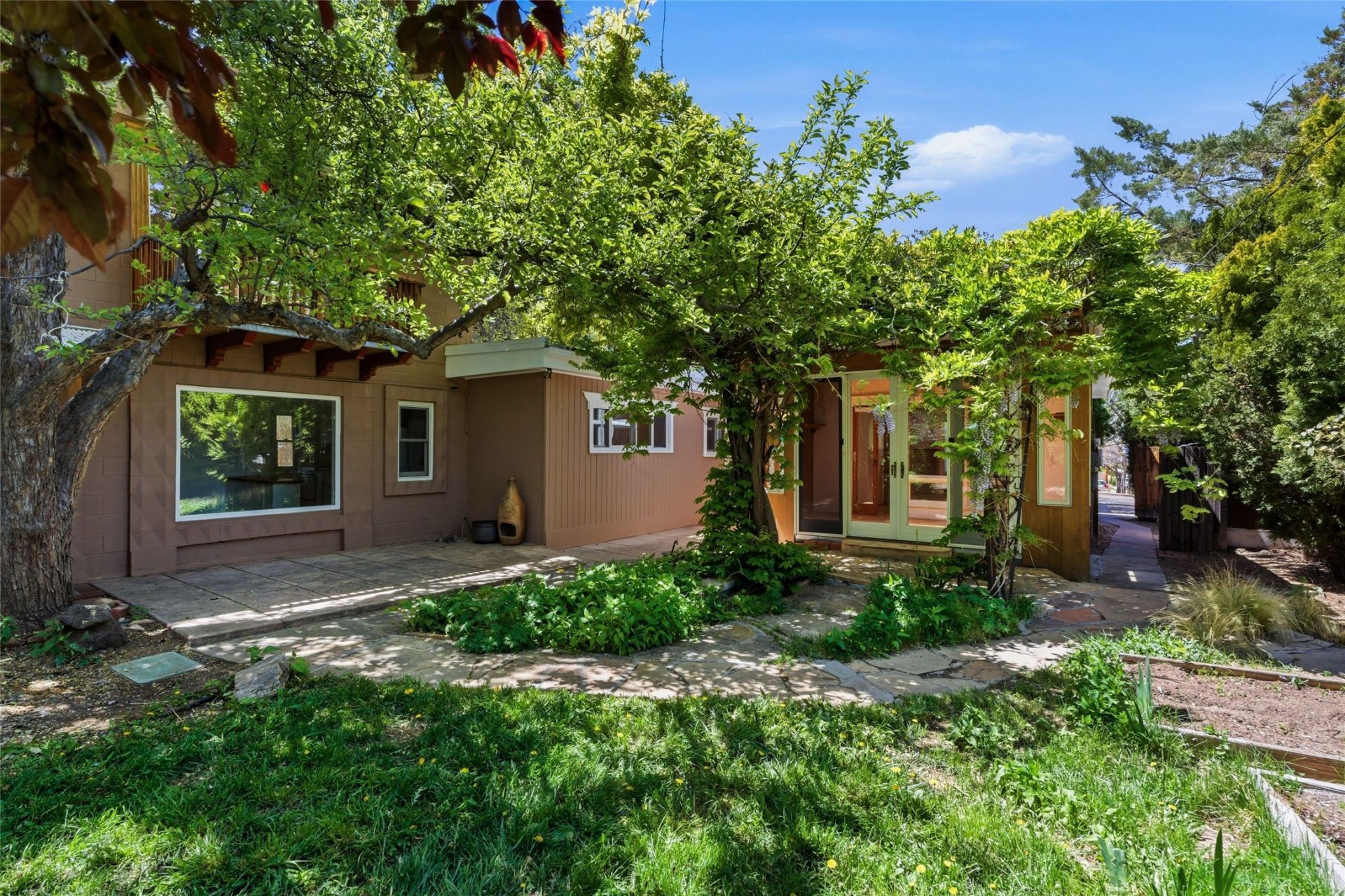 841 Don Diego is a one-of-a-kind, rare multi-structure opportunity in one of Santa Fe's most walkable locations?minutes to the Railyard, many grocery stores, coffee shops, art galleries, cinemas, plaza and much more. Well maintained and move-in ready, the property includes three structures: a 3-bedroom, 2-bath main house (with an incredible sunroom), a darling two story guest house, and an additional studio space?offering flexible use for extended living, workspace, or more. All structures connect to a vast, private and enchanting courtyard ? you just won't believe you are right in town town. Mature trees and a waterfall pond create a private, tranquil setting designed for pure enjoyment. With ample separate parking, solar electric fully paid for, solar water heating, mini-splits in the smaller units and more this home is the pinnacle of opportunity! It's Versatile, well-located, and suited to a range of buyer needs?owner-occupants, investors, or multi-generational living. A rare find! **Square footage is approximate and not guaranteed. Buyer is advised to independently verify all measurements.**