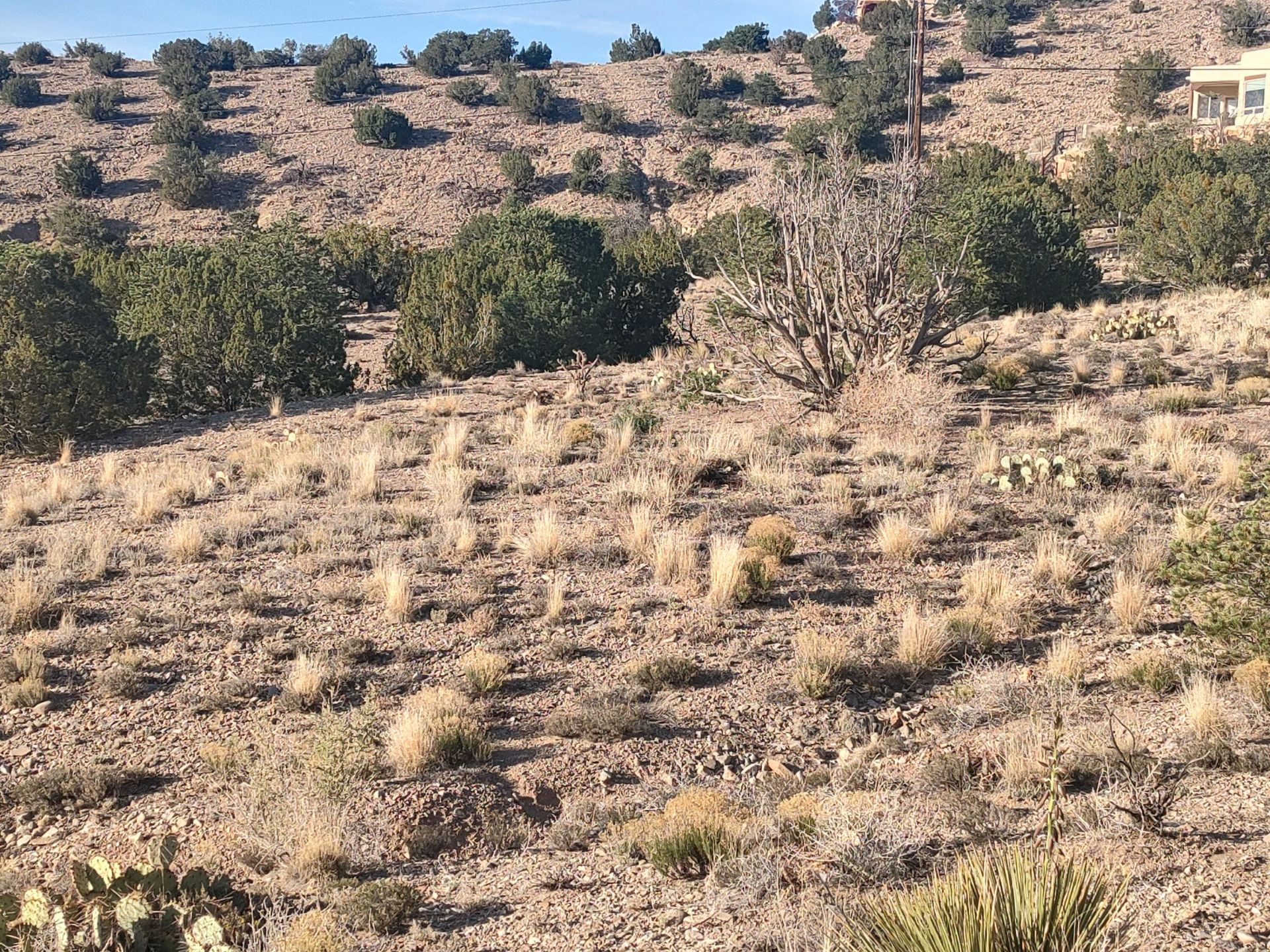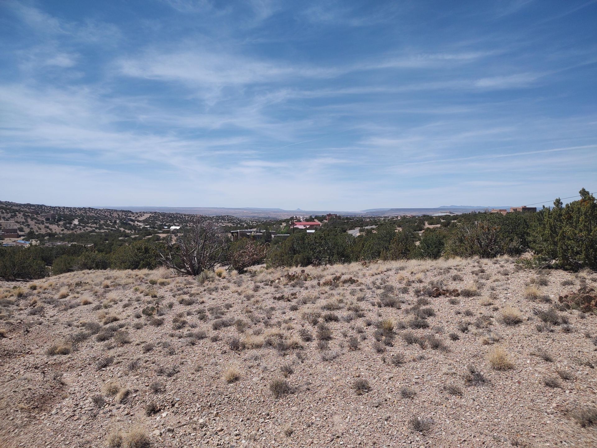 DRAMATIC VIEWS - SANDIA MOUNTAIN AND CABEZON PEAK! $58,000. Country living on 1 acre lot with slightly sloping building site and partial arroyo. Protected views. Electricity in the road. No HOA, reasonable covenants. 900 sq. ft. minimum house size. Horses and chickens allowed. Must drill well. Nearby wells 400 to 420 ft deep. Consult well drillers. Partially fenced. Access from Camino de las Brisas rather than Las Brisas Loop. Adjacent Lot 15-A just west of this lot is also for sale. Bank financing available. Placitas is conveniently located in the foothills of the Sandia Mountains between Albuquerque and Santa Fe.